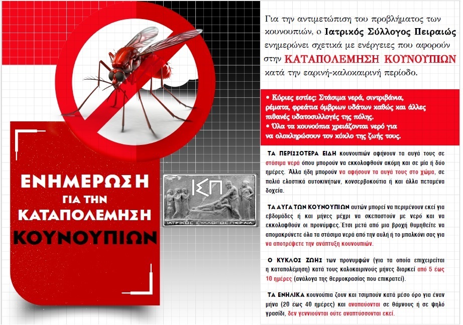ΙΑΤΡΙΚΟΣ ΣΥΛΛΟΓΟΣ ΠΕΙΡΑΙΑ - ΔΕΛΤΙΟ ΤΥΠΟΥ ΕΝΗΜΕΡΩΣΗΣ ΓΙΑ ΠΡΟΦΥΛΑΞΗ ΑΠΟ ΤΑ ΚΟΥΝΟΥΠΙΑ