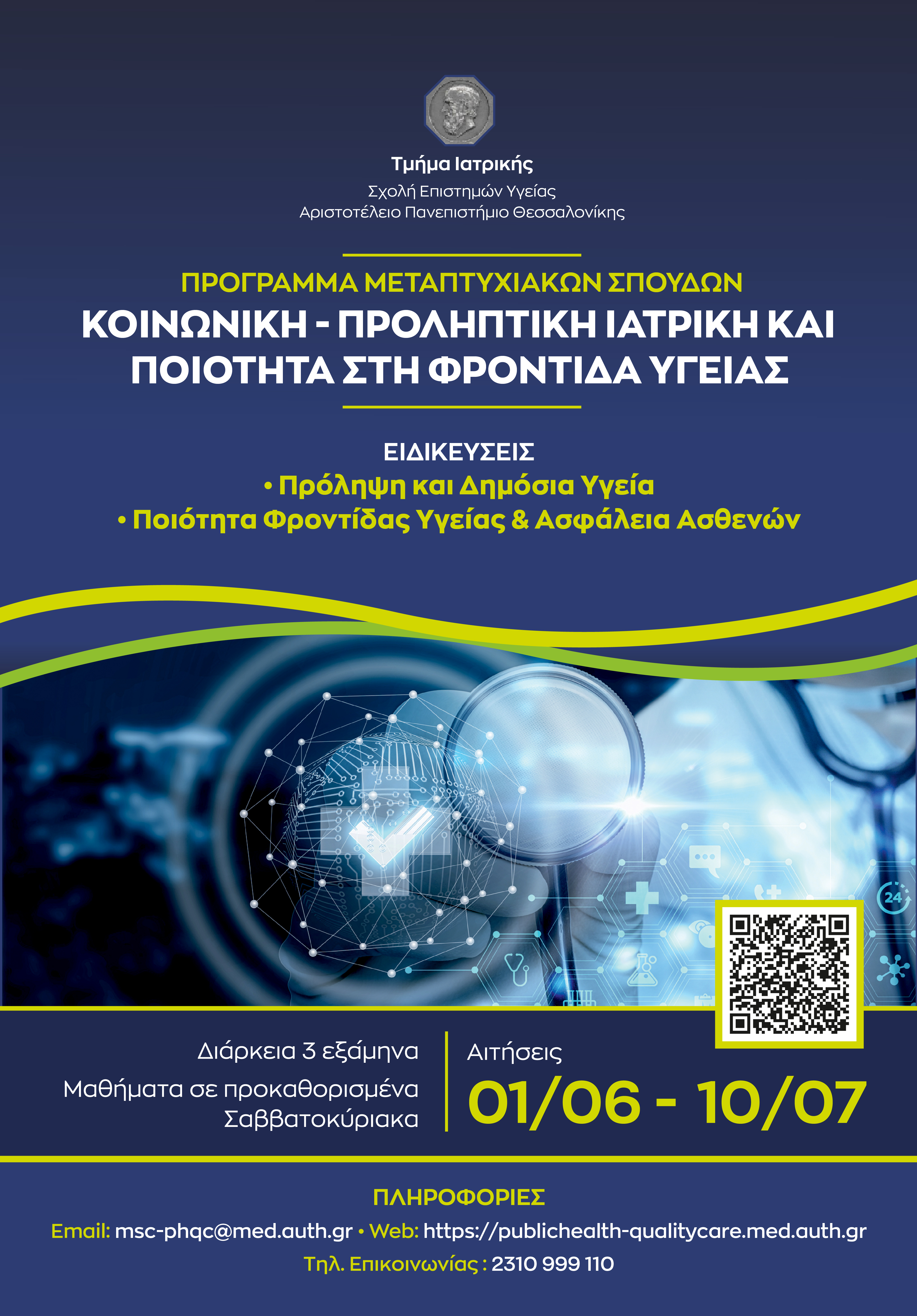 Δημοσιεύτηκε 14:25 - 23/05/2025 Παράκληση για ανάρτηση στο site του Ι.Σ. της Προκήρυξης του Π.Μ.Σ. "Κοινωνική-Προληπτική Ιατρική και Ποιότητα στη Φροντίδα Υγείας"