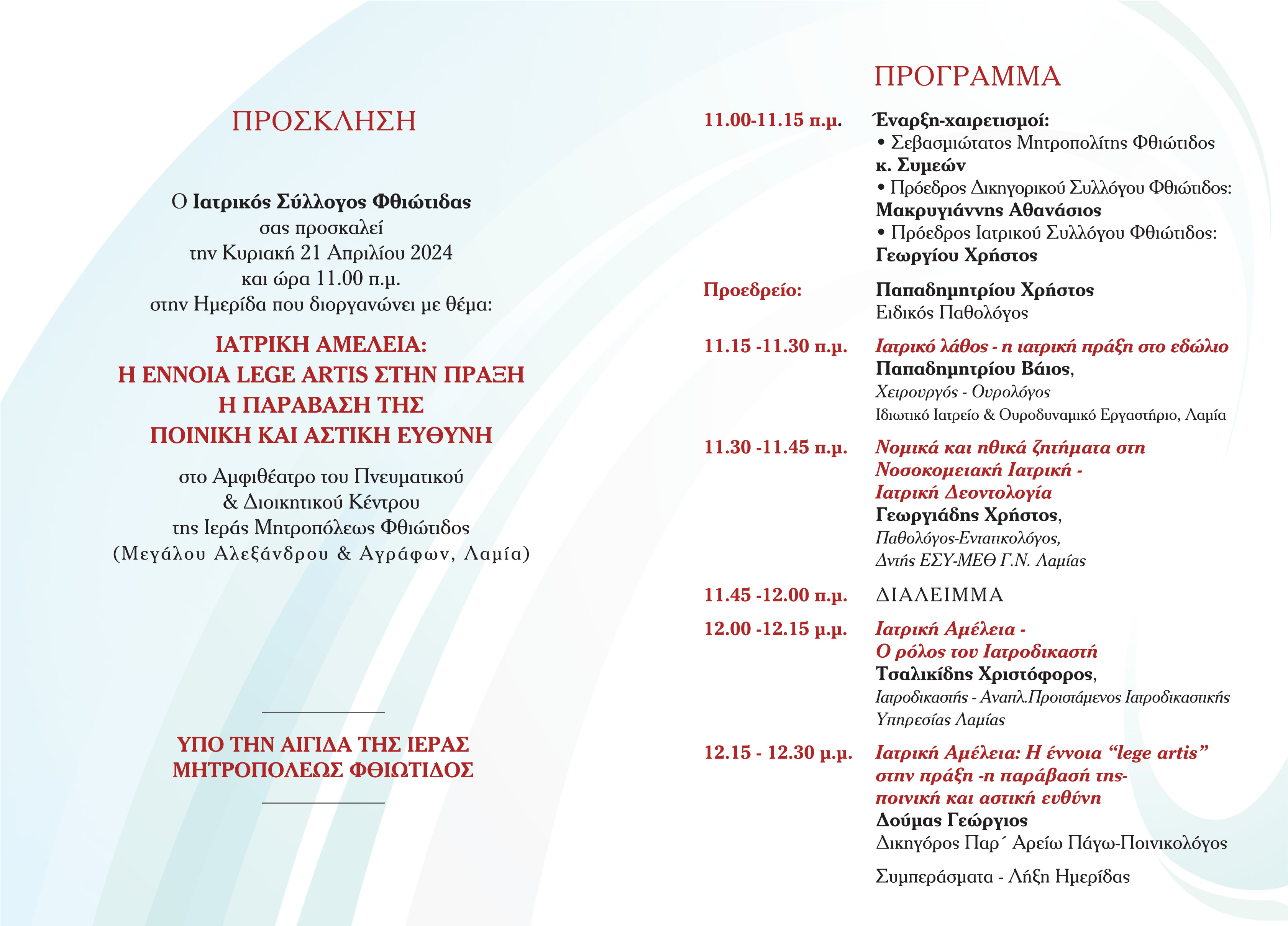 ΙΣ ΦΘΙΩΤΙΔΑΣ ΠΡΟΣΚΛΗΣΗ & ΠΡΟΓΡΑΜΜΑ ΗΜΕΡΙΔΑΣ - 21-04-2024 Αμφιθέατρο του Πνευματικού και Διοικητικού Κέντρου της Ι.Μ. Φθιώτιδας