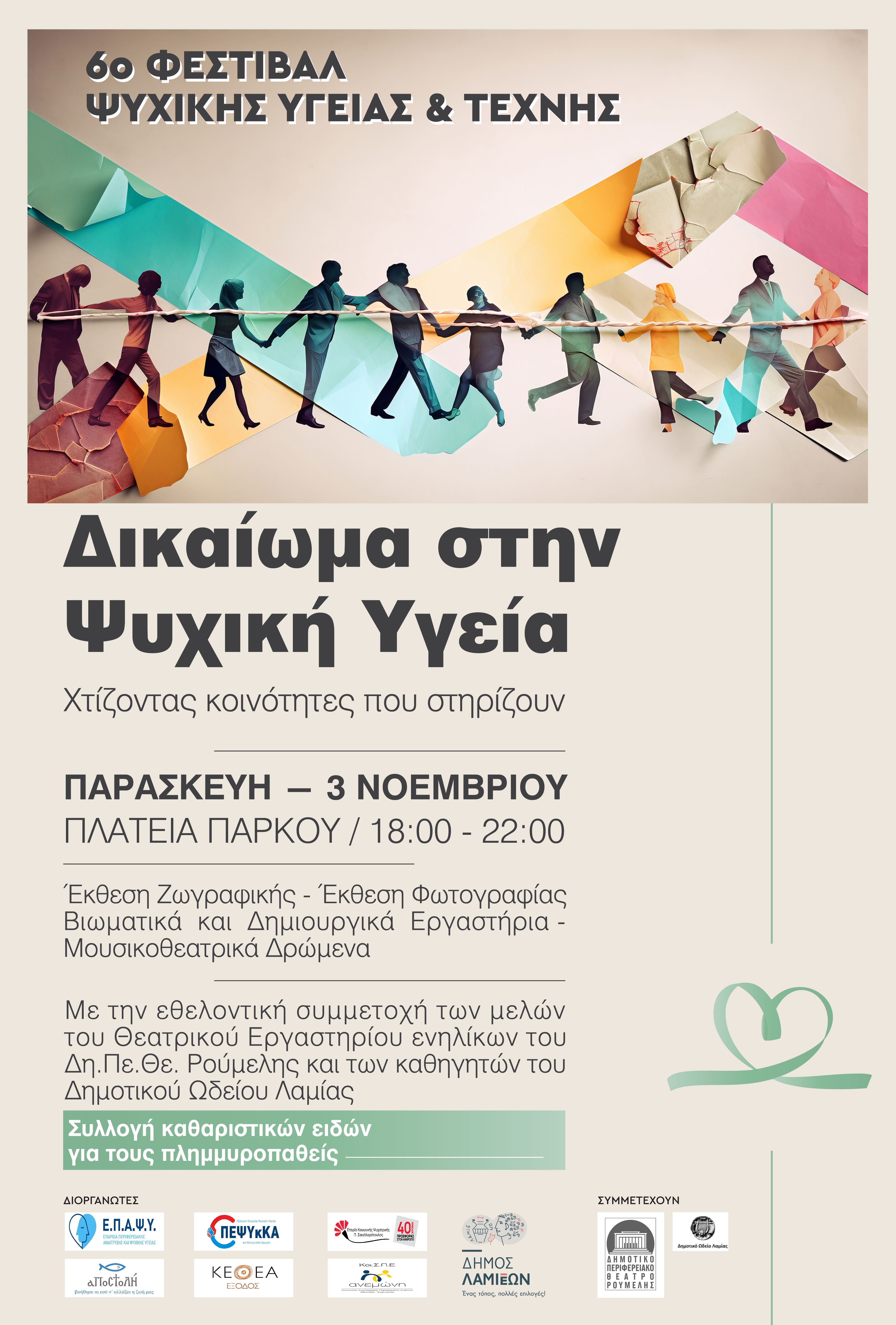 Το φεστιβάλ θα πραγματοποιηθεί την Παρασκευή 3 Νοεμβρίου 2023, από τις 18:00 έως τις 22:00 στην Πλατεία Πάρκου στη Λαμία, με σκοπό την ευαισθητοποίηση των πολιτών σε θέματα ψυχικής υγείας.