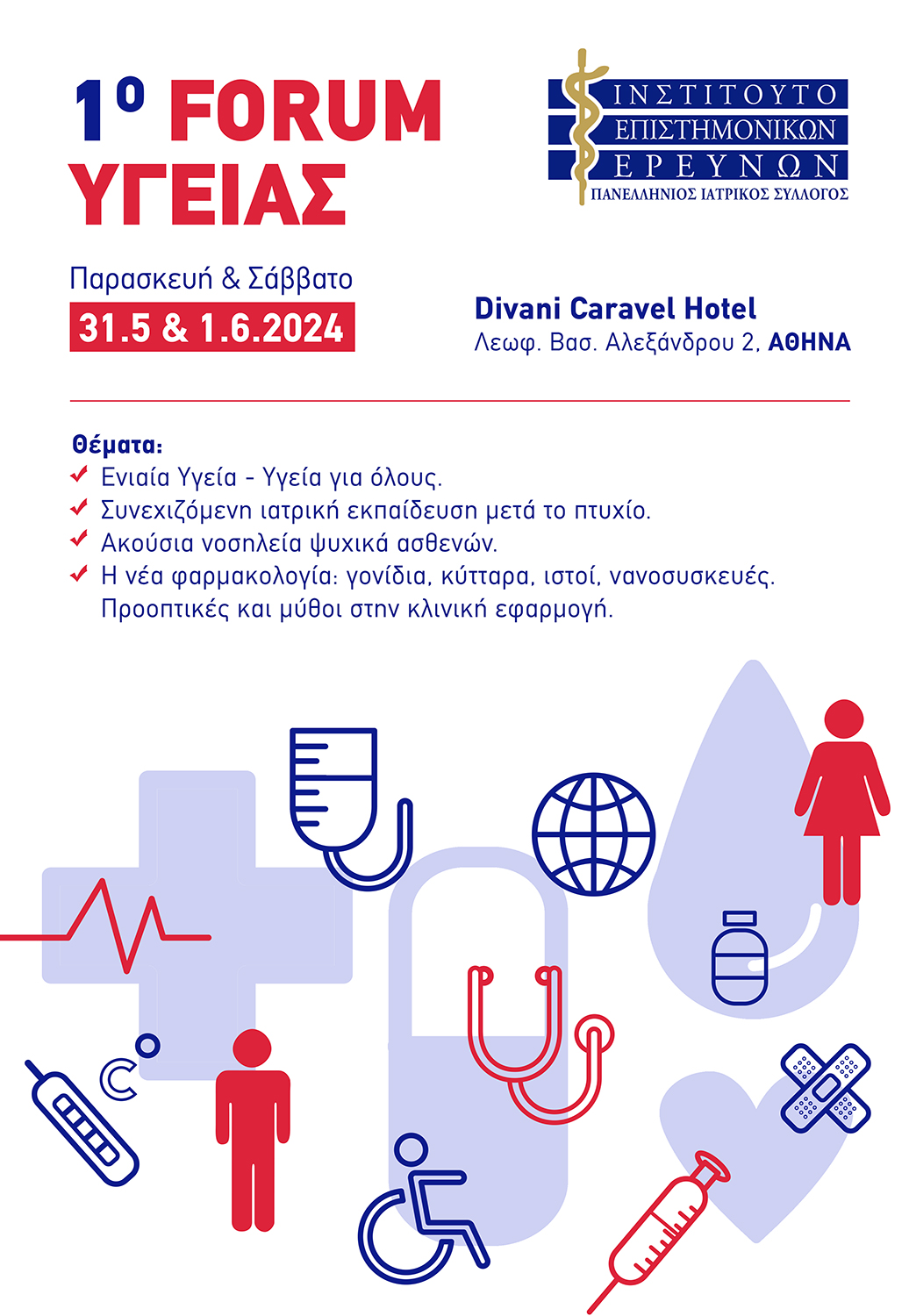 Δημοσιεύτηκε 20:40 - 29/05/2024 ΠΡΟΓΡΑΜΜΑ ΚΑΙ ΑΦΙΣΑ 1ου FORUM ΥΓΕΙΑΣ ΙΝΣΤΙΤΟΥΤΟΥ ΕΠΙΣΤΗΜΟΝΙΚΩΝ ΕΡΕΥΝΩΝ Π.Ι.Σ.