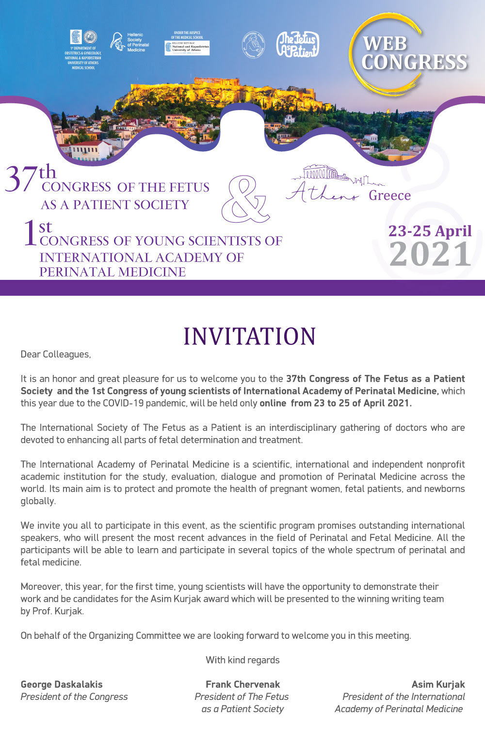 Δημοσιεύτηκε 22:16 - 10/02/2021 Invited Speakers | 37th Congress of The Fetus as a Patient Society & 1st Congress of young scientists of International Academy of Perinatal Medicine | 23-25/4/21